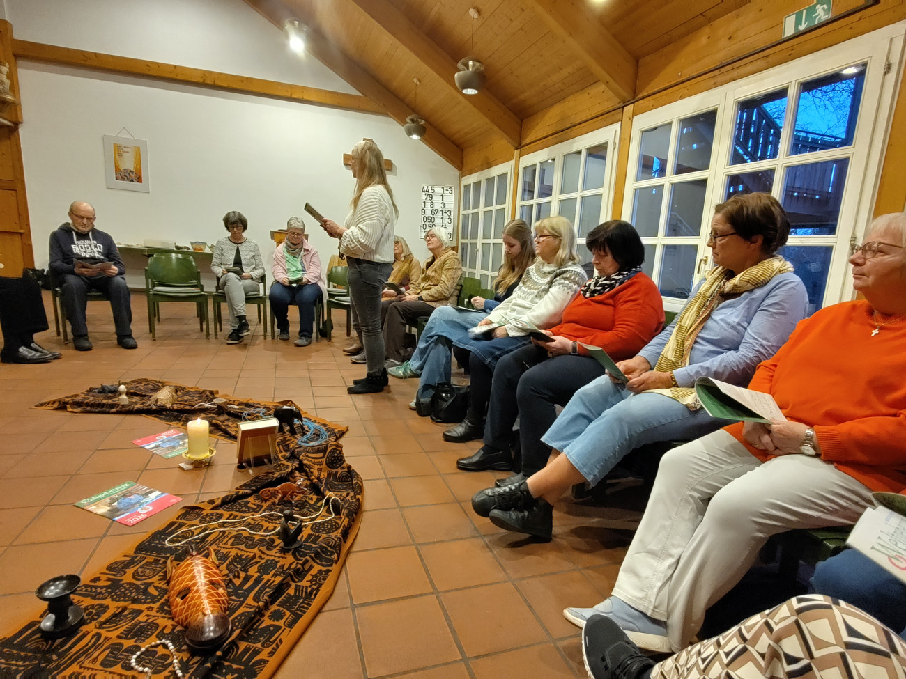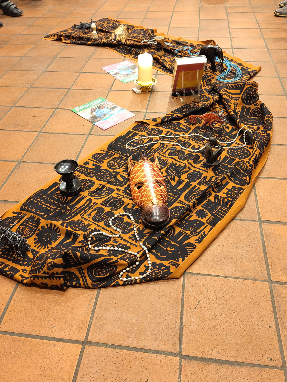 Unter dem Motto: „Kommt! Bringt eure Last.“ Haben Frauen aus Nigeria die Liturgie für diesen Abend gestaltet. Als Bibeltext standen die vertrauten Worte aus Matthäus 11,28-30 mit den Worten Jesu im Mittelpunkt: „Kommt alle zu mir, die ihr mühselig und beladen seid! Ich will euch erquicken. Nehmt mein Joch auf euch und lernt von mir; denn ich bin gütig und von Herzen demütig; und ihr werdet Ruhe finden für eure Seele. Denn mein Joch ist sanft und meine Last ist leicht.“ Mit persönlichen Worten übersetzte Elke Schrapp diesen Text in die Situation von Frauen hier und heute, bevor die Frauen aus Nigeria vorgestellt wurden: Die junge Witwe Beatrice, die ihren Mann und damit den Platz in der Gesellschaft verlor, Jato, die sich Sorgen um ihre Tochter Amina macht – weil die Erinnerung an Leah Sharibu sie begleitet, die vor Jahren entführt und nicht mehr gesehen wurde und Blessing, deren Träume vom Fortschritt enttäuscht wurden. Alle erleben, wie ein Miteinander von Frauen und der Glaube an Jesus Christus ihnen hilft, die Hoffnung auf eine bessere Zukunft und eine bessere Welt nicht aufzugeben.