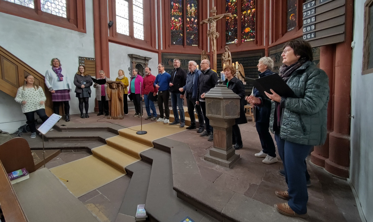 Passend zu den Chormusiktagen in Würzburg hatten wir in der Kirchengemeinde Besuch vom Chor Marengomo – einer Gruppe aus Malmsheim und Renningen in Baden-Württemberg, die Gospel und Moderne Musik singen. Sie haben den Gottesdienst in der Deutschhauskirche mit ihrer Musik bereichert und für gute Stimmung gesorgt. Thema des Gottesdienstes war die Frage, was zum Glauben gehört – das Spirituelle oder das Aktive (gesellschaftliche) Tun. Beides braucht es – das eine ohne das andere ist nicht komplett. Schöne Musik gehört auf jeden Fall dazu!