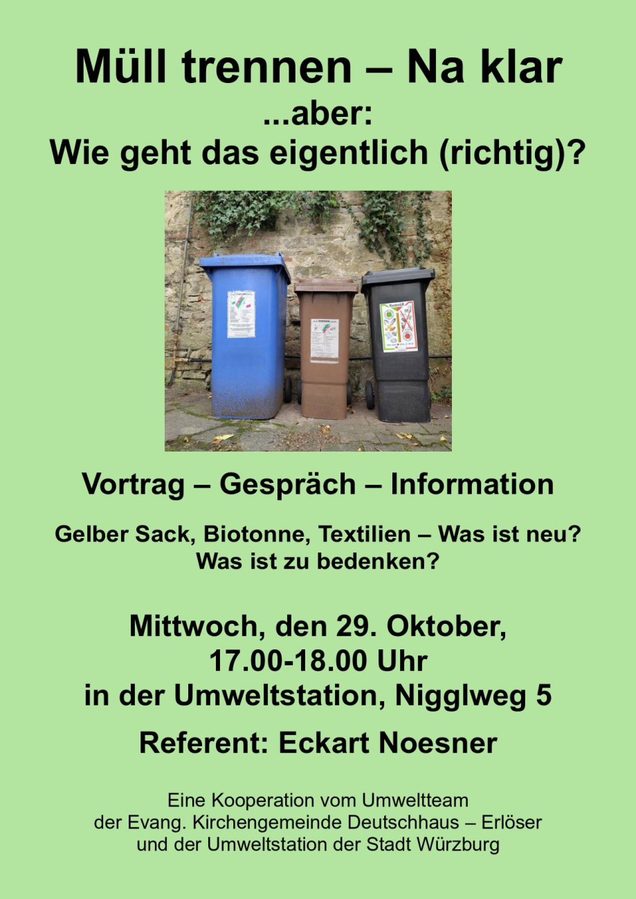 Einladung zur Infoveranstaltung zum richtigen Müll trennen am 29. Oktober um 17 Uhr in der Umweltstation Würzburg/Zellerau